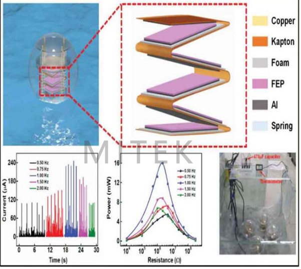 納米發電機,是基于規則的氧化鋅納米線的納米發電機,是在納米范圍內將機械能轉化成電能,而摩擦發電納米發電機基于摩擦起電和靜電感應的耦合將機械能轉換成電能,兩者均是世界的發電機。研究納米發電機的電學輸出特性,開路電壓、短路電流、轉移電荷、功率密度、對提是高發電機輸出功率,轉換效率及產品設計的可靠性有著密不可分的關系。